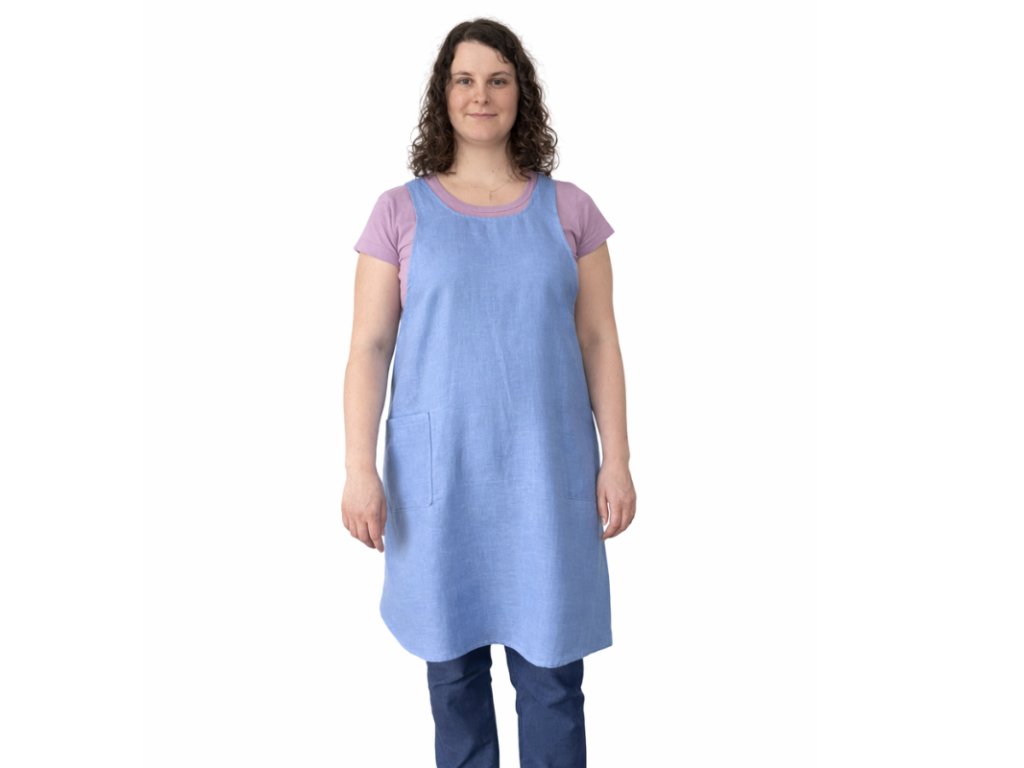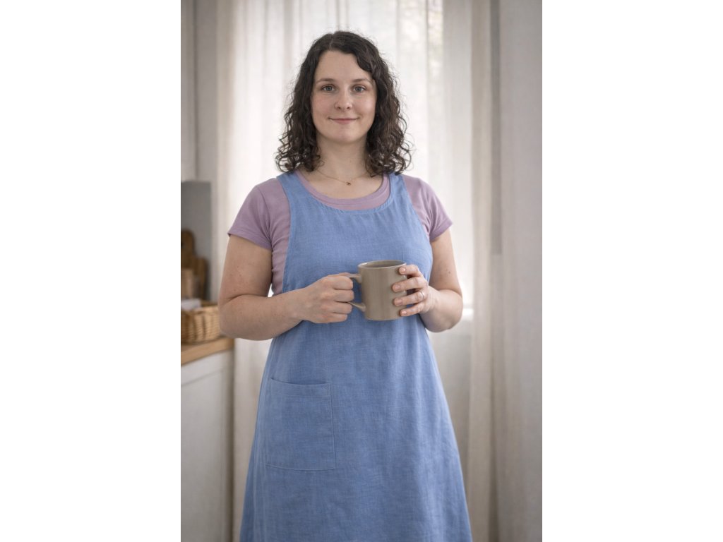 Tato lněná zástěra nevznikla pro dokonalé kuchyně, ale pro skutečný život. Pro pomalá rána, dlouhá odpoledne na zahradě i práci v kuchyni. Pro ženy, které chtějí mít ruce volné a potrpí si na pohodlí.