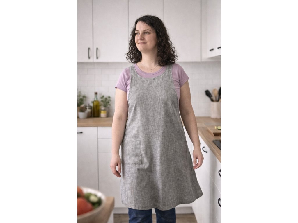 Tato lněná zástěra nevznikla pro dokonalé kuchyně, ale pro skutečný život. Pro pomalá rána, dlouhá odpoledne na zahradě i práci v kuchyni. Pro ženy, které chtějí mít ruce volné a potrpí si na pohodlí.